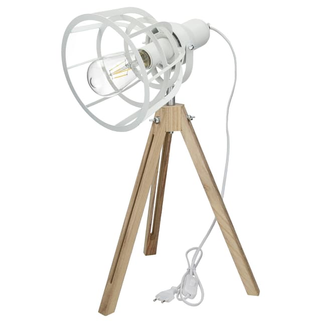 Leveringsomfang: 1 bordlampe inkl. Illuminant Specifikationer Lamp: Materiale: metal, træ Hvid mat, Kabel Sort, træ farve Skærm: Ø 20 cm Højde Ben: ca 38,5 cm Total højde: 54 cm ca.Læs mere om produktet