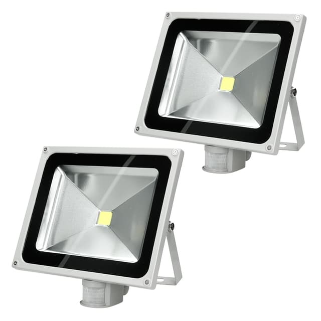 2 x 50W SMD LED projektører med bevægelsesdetektor kold hvid 6000K