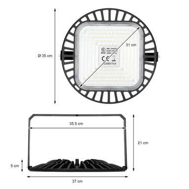 Med denne LED høj bugt armatur ECD Germany får du en perfekt lyskilde til lager eller fabrikker. Hallen lys er selv meget velegnet til forretningslokaler.