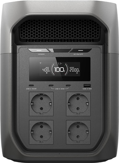 Oplev uafbrudt strømforsyning med denne EcoFlow Delta 3 Max bærbare strømstation. Den leverer 2400W AC-udgang (3400W med X-Boost™) og håndterer kraftige apparater som køleskabe og elværktøj. Med en vægt på kun 20,3 kg er den ideel til udendørs eventyr, nødbackup og pålidelig strøm uden for elnettet.