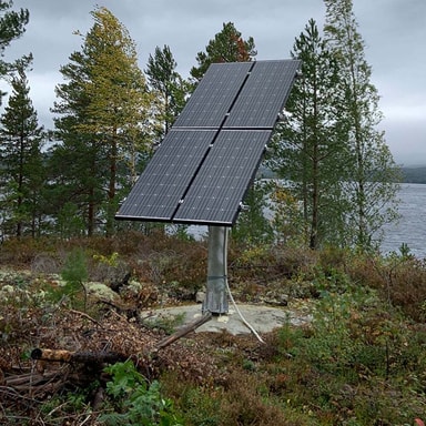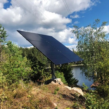 Bakkestående stativ for montering av flere Grid solcellepaneler.