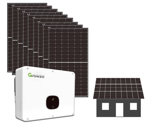 Solcellepakke 10kW med Jinko solpanel og Growatt inverter, til huse og sommerhuse tilsluttet et 230V 3-faset elnet.PS! Produktteksten er maskineoversat fra norsk.