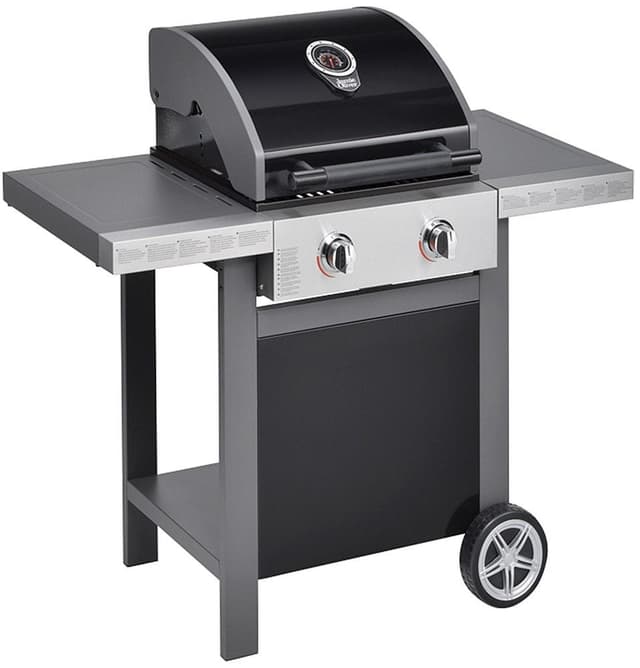 Gasblus: Grillen har 2 gasblus med en totaleffekt på 7200 watt. Kontrolknapperne har integreret tænding for mere praktisk og hurtig brug.