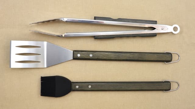 Stylet 3 delt redskabssæt med grillpensel, rustfri stål palet og tang med espresso egetræshåndtag