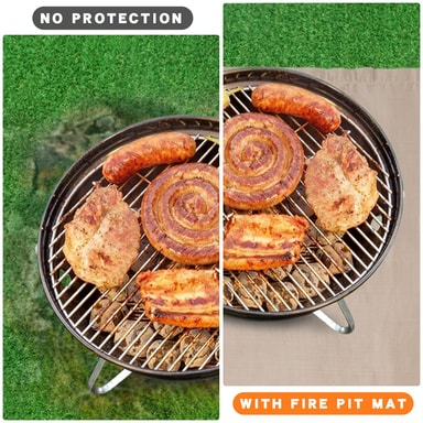 En pejsemåtte beskytter terrassen og græsplænen mod aske, væske, fedt eller høj temperatur, når du griller. Beskyttelsesmåtten rulles sammen og tages komfortabelt med. Underlaget er slidstærkt og genanvendeligt.
