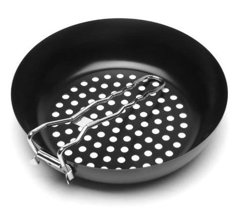 Porcelænsemaljeret grillwok med foldbart håndtag. Perfekt til alt der ellers ville falde gennem din grillrist. Godt til stegning af grøntsager uden fedtstof og med lækker smag af grill og røg.