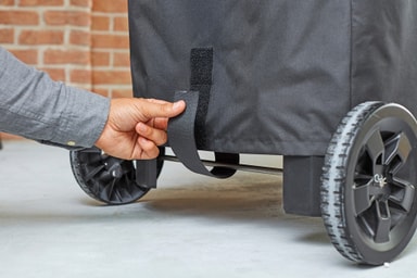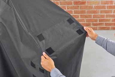 Beskyt din Weber Pulse 1000 grill med stativ mod silende regn, iskold sne og brændende sol med Weber Premium grillbetrækket 7185, som ikke kun er vandtæt men også er nemt at sætte på og tage af takket være betrækkets stropper.