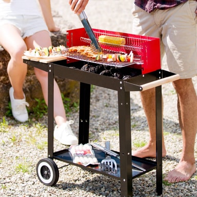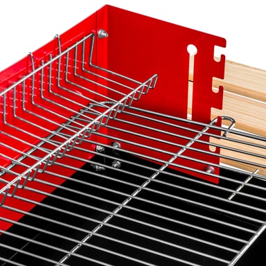 Med den mobile grill fra tectake er du altid klar til at grille. Uanset om du er i haven, på stranden eller på camping. De to hylder på træsiden og metalgulvet er ekstra praktiske. Der er alt tilbehør lige ved hånden. En stor grillrist byder på masser af plads til velsmagende grill-specialiteter. Derudover kommer risten med en varmekurv. Der kan du tilberede allerede grillede eller langsomt tilberedte grøntsager eller fisk. BBQ-grillen er mobil takket være sine to hjul og kan flyttes efter ønske. Bestil den praktiske grill fra tectake med det samme.