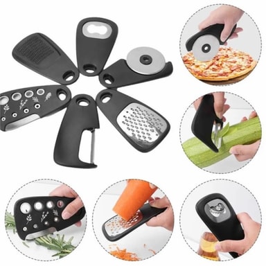 6-i-1 Pizzaskærer dåseåbner Hvidløgsmåler Skræller mv