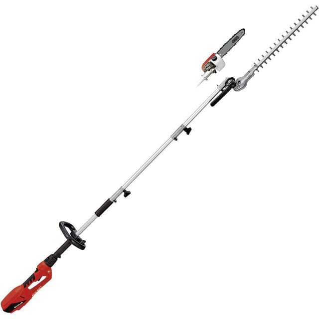 Den elektriske stav-hækkeklipper/beskærersaks GC-HC 9024 T er en fleksibel 2-i-1 allrounder til pleje af buske, hække og buske. Med GC-HC 9024 T er det let at afkorte ark- og grenene til den ønskede længde. Knivene i laserskåret og diamantslebet stål garanterer et skarpt snit ved små og mellemstore grene, ved trimning, kapper og Surringsstudser, tætte forgreninger. Skærevinkelindstillingen ved hækkeklipperen og det trinløst justerbare håndgreb sørger for ergonomisk og komfortabelt arbejde, også ved længere tids brug. Den elektriske højafladers kraft er kombineret med Oregon sværd og kæde. Den automatiske kædesmøring sørger for en ukompliceret håndtering. Metaldrevet står for en lang levetid. 50 centimeter måler teleskopforlængeren, så der også nemt kan opnås højere hække- eller byggemargin. Klarer svært at studse steder i grøn, klarer hobbygarteren uden problemer med det drejelige baghåndtag. For lettere brug har el-MultiTool en justerbar bærerem med hurtigåbning. Til opbevaring og transport medfølger en stabil holder til hækkesaksen og beskæresaksen. OBS! Denne produktbeskrivelse er endnu ikke blevet oversat til dansk af vores oversættere. Derfor er teksten maskineoversat fra den tyske originaltekst.