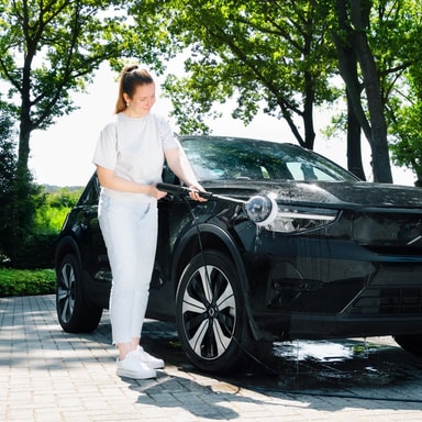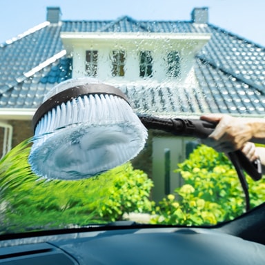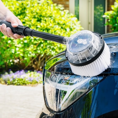 Det roterende børstehoved giver en skånsom, men grundig rengøring af glatte overflader som biler, både, campingvogne, udestuer og glaspartier.