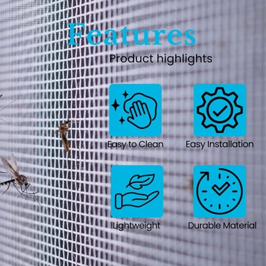 Vores flammehæmmende fluenet i glasfiber af høj kvalitet giver dig - sammenlignet med andre materialer - lang levetid på dine døre og vinduer. Takket være den UV-bestandige glasfiber falmer nettet ikke og bevarer sin rivestyrke. Den høje rivestyrke forhindrer også, at enderne af nettet flosser. Den beskyttende skærm holder insekter og andre miljøpåvirkninger som pollen og støv ude. Afhængigt af omstændighederne kan den fastgøres med klemmer, burrebåndslukning, klæbestrimler eller dobbeltklæbende tape. Dette produkt sælges i metermål, dvs. 1 ordre = 1 meter. Dimensioner: Bredde: 80 cm. Maskebredde 1,2 mm.