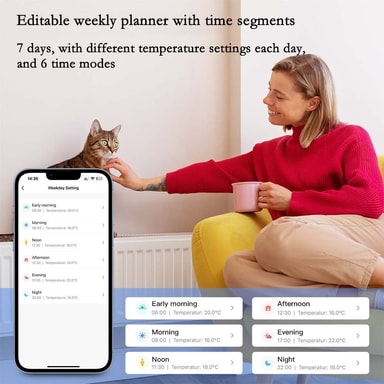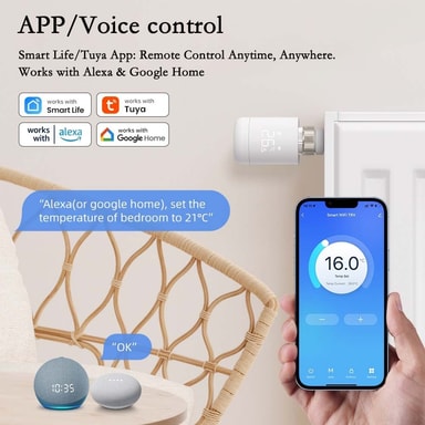 Fjern- og stemmestyring: Tag kontrol over dit hjems varme hvor som helst med fjernbetjeningsfunktionerne i Tuya ZigBee Smart Termostatisk Radiatorventil. Ved hjælp af Smart Life/Tuya Smart APP'en kan du justere temperaturen, indstille tidsplaner og overvåge dit varmesystem, selv når du er væk hjemmefra. Ventilen understøtter også stemmestyring, så du nemt kan justere temperaturen med simple stemmekommandoer via kompatible smarte hjemmeassistenter. Forestil dig at komme hjem til et perfekt opvarmet hus, alt sammen styret med din stemme eller et par tryk på din smartphone. Denne funktion giver ultimativ bekvemmelighed og fleksibilitet og sikrer, at dit hjem altid har den perfekte temperatur, kompatibel med din livsstil.