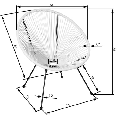 På de indbydende retrostole fra tectake i oval Acapulco-stil kan man både sidde hyggeligt eller ligge og slappe af. De fine, elastiske plastsnore tilpasser sig perfekt til enhver kropsform. Med sin enkle elegance gør den kurvede, fine konstruktion sig godt både udendørs og indendørs i boligen. Rammen af pulverbelagt stål og siddefladen af robust polyætylen giver de lette stole fra tectake stor stabilitet og høj komfort.
