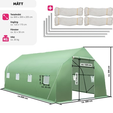 Det praktiske drivhus med gitterfolie byder på et stort areal og et sydligt simuleret klima, til dyrkning af forskellige urter, grøntsags-, frugt- og blomstersorter. Dine planter er beskyttet mod kulde pg frost. De stabile, pulvercoatede metalrammer og den frostsikre PE-gitterfolie gør det store foliedrivhus til et perfekt klima for dyrkning af grønt. Det smarte drivhus har en dør og otte vinduer, som sørger for tilstrækkelig ventilation.