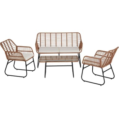 Det fint flettede polyrattan imponerer ikke kun med sit tiltalende udseende, men også med sin vejrbestandighed. I kombination med den pulverlakerede stålramme er høj stabilitet og førsteklasses bæreevne sikret. De højdejusterbare, skridsikre plastfødder sikrer desuden et sikkert standpunkt på enhver overflade.