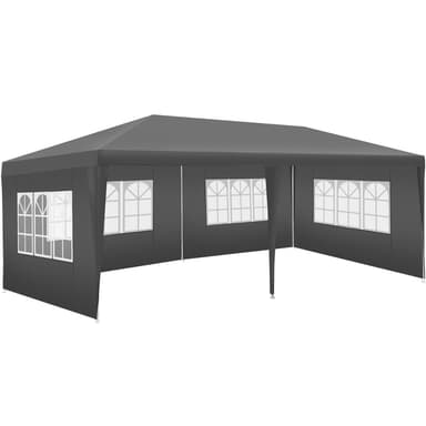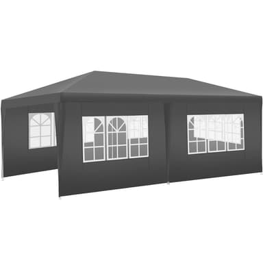 Et særligt højdepunkt er de fem fleksible sidedele, som du nemt kan fastgøre eller fjerne med selvklæbende bånd. Så tilpasser havepavillonen sig ubesværet dine behov – åben til luftige sommerdage eller lukket for mere privatliv og beskyttelse. De store vinduer sørger for en lysfyldt, indbydende atmosfære. Således virker pavillonen ikke kun visuelt venlig, men tilbyder dig også en behagelig indendørs omgivelser.