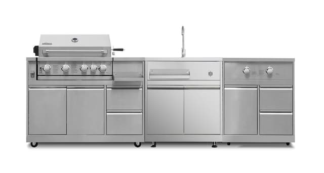 Udekøkkenpakken indeholder 3 moduler: en gasgrill med fire gasblus og infrarød brænder, et praktisk køkkenbordsmodul med kapselåbner og opbevaringsplads samt et sidebrændermodul med to blus, som giver mulighed at koge og stege tilbehør på forskellige temperaturer, samtidigt med du griller. Med det praktiske Ontario ønsker du, at grillsæsonen varer året rundt.