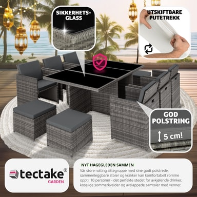 tectake tilbyder et stort kvalitetssortiment af havemøbler, boligindretning, fritids- og sundhedstilbehør, værkstedstilbehør, kæledyrstilbehør, børneartikler og meget mere - altid med gratis fragt! Vores mål er at levere praktiske og smukke varer af højeste kvalitet, og vores kunders tilfredshed er vores højeste fokus. Tøv ikke med at kontakte os, hvis du har spørgsmål til vores produkter, tilbud eller andet.