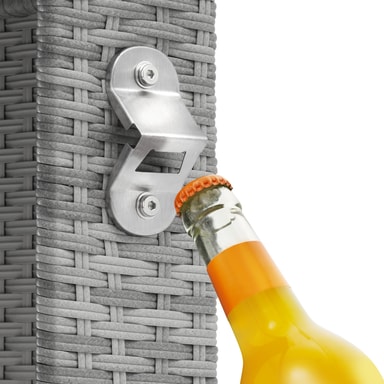 Tectakes praktiske havemøbelsæt i polyrattan, Palermo, sætter et smukt præg på dit udendørsområde. Det indbydende havemøbelsæt imponerer visuelt med det fine flet af slidstærk polyrattan og struktur med det solide stel af pulverlakeret stål. Havemøbelsættets polyrattan er også UV-bestandigt, så falmer langt mindre i farven henover tid end andre produkter. Den komfortable skammel giver en ekstra siddeplads, og ellers kan man bare kan lægge fødderne op. Centrum for loungesættet finder du det stilrene havebord med aftagelig sikkerhedsglasplade. Desuden har havebordet også aftagelig flaskåbner, så du ikke skal bekymre dig om at skulle finde en oplukker mens du slapper af. De bløde hynder sørger for afslappede stunder i stuen eller under åben himmel. Takket være de vand- og smudsafvisende egenskaber, kræver de pladsbesparende havemøbler kun lidt rengøring og kan hurtigt og nemt skubbes sammen efter brug.