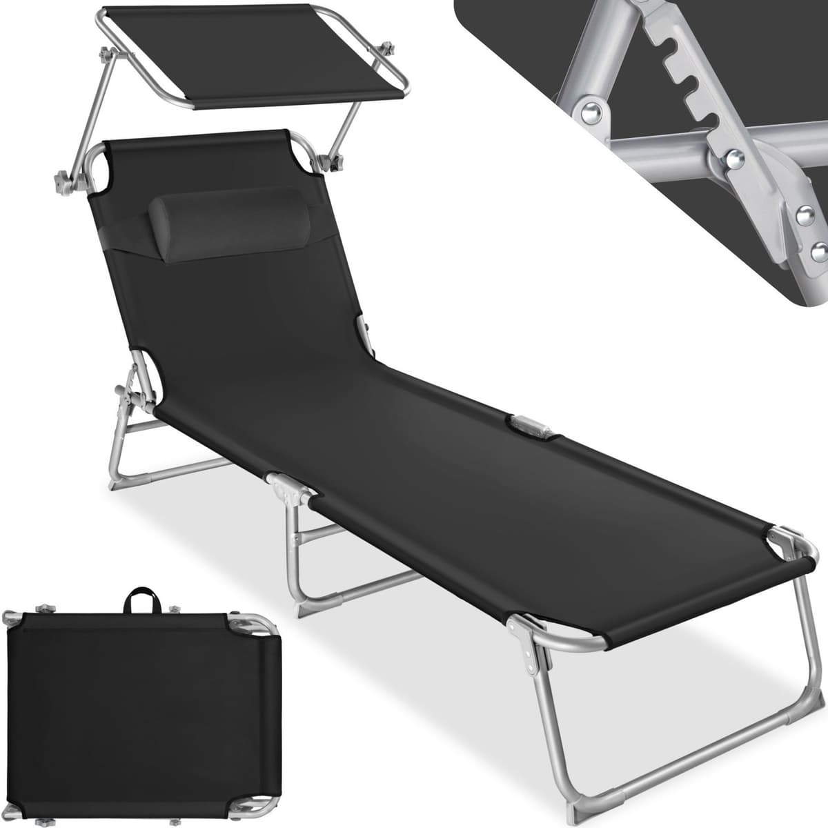 For den maksimale sommernydelse kombinerer denne alsidige solseng fra tectake høj funktionalitet med et robust design. Det 4-trins justerbare ryglæn, det fleksibelt indstillelige soltag, den bløde hovedpude og den behagelige liggeflade garanterer maksimal afslapning i denne liggestol. Det pulverlakerede trebens-stålstel giver den vedligeholdelseslette konstruktion ekstrem stabilitet og stor vippebeskyttelse. Den enkle klapmekanisme, de ideelle sammenklappede mål og de praktiske håndtag gør den lette solseng fra tectake ideel at tage med på farten. Denne solseng er herudover nem at opbevare.