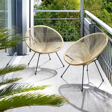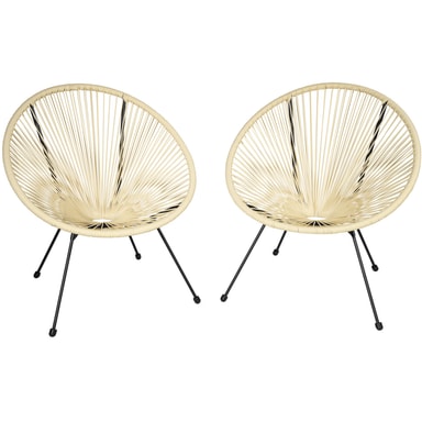 På de indbydende retrostole fra tectake i oval Acapulco-stil kan man både sidde hyggeligt eller ligge og slappe af. De fine, elastiske plastsnore tilpasser sig perfekt til enhver kropsform. Med sin enkle elegance gør den kurvede, fine konstruktion sig godt både udendørs og indendørs i boligen. Rammen af pulverbelagt stål og siddefladen af robust polyætylen giver de lette stole fra tectake stor stabilitet og høj komfort.