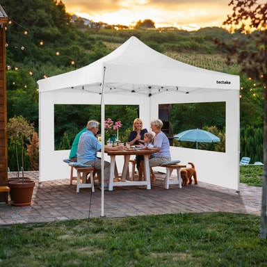 Opdag den ultimative kombination af stil og funktionalitet med vores Pop Up Pavillon Olivia 3x3 m med 2 sidestykker i. Denne premium pavillon er en del af vores eksklusive ""Pavillon"" kollektion, designet til at løfte din udendørs oplevelse. Perfekt til både intime sammenkomster og større fester, sikrer Olivia pavillonen, at du altid er godt beskyttet mod elementerne.