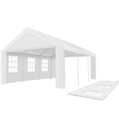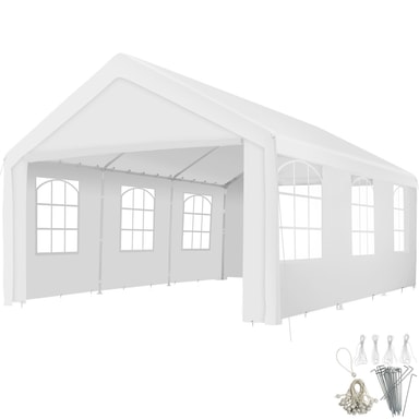 Tectakes festtelt i høj kvalitet kombinerer funktionalitet og design under i ét telt. Rammen består af fuldt galvaniseret og pulverlakeret stål. Pløkker og spændingskabler sikrer fast forankring til jorden. Festteltets sidedele kan monteres eller udelades afhængigt af, hvor åbent og luftigt teltet skal være. Tagdækket er i ét stykke, og ligesom sidedelene er det fremstillet af slidstærk polyester med svejsede sømme. Disse funktioner giver den UV-resistente pavillon fra tectake til den perfekte beskyttelse mod sol og let regn.