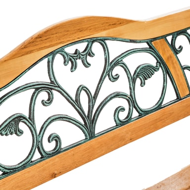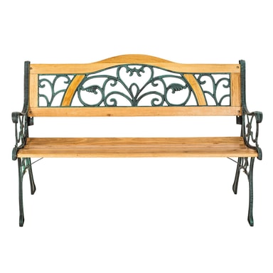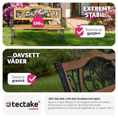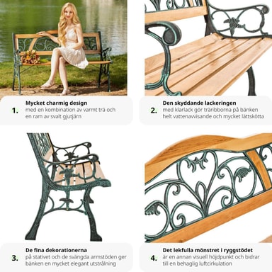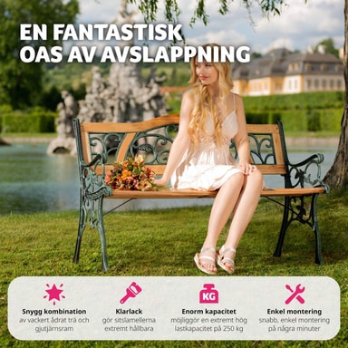 Denne flotte havebænk udgjort i træ og støbejern forvandler din have til