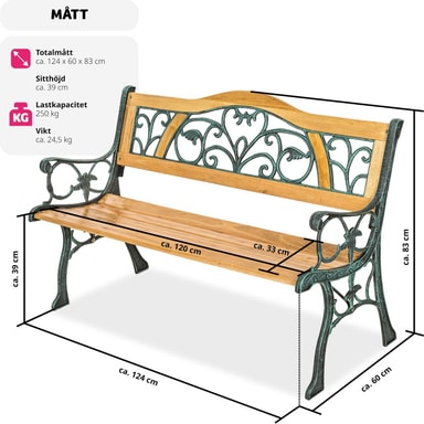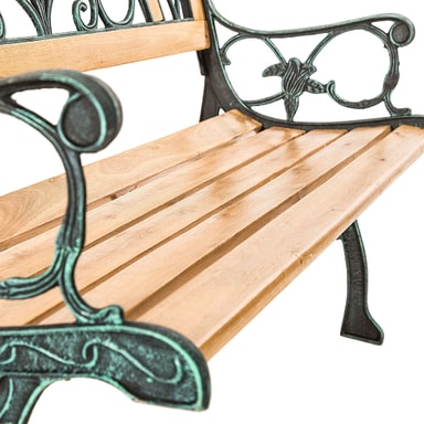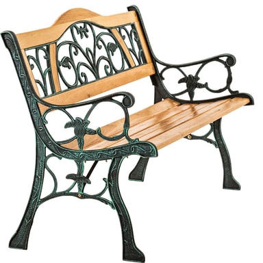 klassisk havebænk i træ og støbejern.