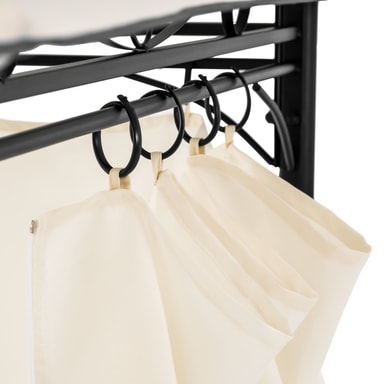 Med denne luksus havepavillon med 6 sider forvandler du din have eller terrasse til en sand oase. Som solafskærmning på varme dage, eller til havefesten om aftenen - pavillonen egner sig fremragende til enhver anvendelse i det fri. Havepavillons ornamenteringgiver den et luksuriøst udtryk. På grund af sidestykkerne bliver du ikke forstyrret af nysgerrige blikke. Taget lader varmen slippe ud og sørger for ventilation af frisk luft. Få fat på en luksuriøs havepavillon til din have med det samme.
