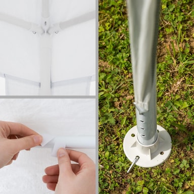 Denne klassiske pavillon er den perfekte ledsager til festivaller, campingture, havefester eller bare i haven for at grille. Festteltet giver et skyggefuldt samt mere privat sted, når man er på tur. Med line og pløkker står pavillonens ramme stabilt og er nemt og hurtigt sat op og klar til brug. Gør turen i det fri mere bekvem med en smart pavillon fra tectake.