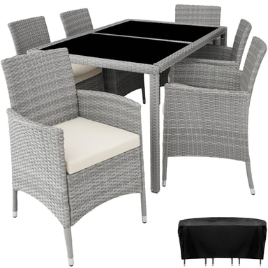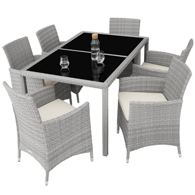 Oplev en ny dimension af komfort og stil i din have med vores 6+1 rattan havemøbelset med stole og bord. Robust, let at vedligeholde og stilfuldt – dette havemøbelsæt lader intet tilbage at ønske og forvandler ethvert udendørsområde til et afslappende paradis.