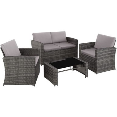 Med dette flotte loungesæt i polyrattan med havestole og bord fra tectake er du sikker på at motivationen til at slappe af i solen ikke bliver spildt. Med flotte hynder er komforten sat i fokus med dette loungesæt.