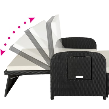 Den multifunktionelle rattan havesofa fra tectake med sine bløde hynder og det højdejusterbar ryglæn giver fremragende sidde- og liggekomfort. Med et par få greb bliver den elegante sofa til en indbydende liggestol.Læs mere om produktet