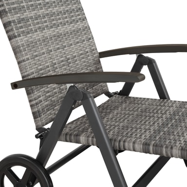 Savner du havemøbler, der kan gemmes væk henover vinteren uden at fylde hele garagen, så er denne stilrene solvogn i polyrattan med garanti noget for dig. Liggestolen kan klappes sammen og på sine hjul let køres væk fra terrassen, eksempelvis når der skal holdes arrangementer i haven. Polyrattan er særligt egnet til udendørs brug og samtidig optisk tiltalende. Med de behagelige armlæn og det indstillelige ryglæn kan du nemt finde dig til rette i den lækre solvogn.