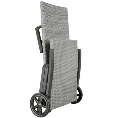 Savner du havemøbler, der kan gemmes væk henover vinteren uden at fylde hele garagen, så er denne stilrene solvogn i polyrattan med garanti noget for dig. Liggestolen kan klappes sammen og på sine hjul let køres væk fra terrassen, eksempelvis når der skal holdes arrangementer i haven. Polyrattan er særligt egnet til udendørs brug og samtidig optisk tiltalende. Med de behagelige armlæn og det indstillelige ryglæn kan du nemt finde dig til rette i den lækre solvogn.