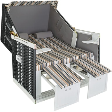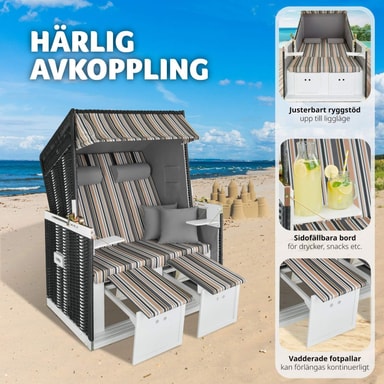 Denne komfortable strandstol er designet til ultimativ afslapning. Med to udtrækkelige, polstrede fodstøtter og polstrede nakkepuder får du den støtte, du behøver for en afslappende dag i solen. Ekstra puder giver ekstra komfort, så du kan finde din perfekte position. Med muligheden for at anvende stolen som en liggestol, tilbyder den justerbare overdel fire låsbare positioner, der sikrer den ideelle afslapningsvinkel.