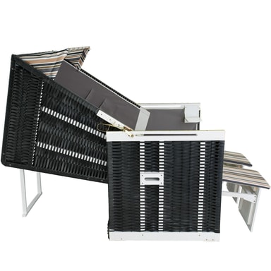 De to udfoldelige sideborde gør det nemt at have dine drikkevarer eller yndlingsbøger lige ved hånden, mens de praktiske transportgreb gør det nemt at flytte stolen rundt i haven. Med det vejrbestandige cover med lynlås kan du beskytte din strandstol året rundt.