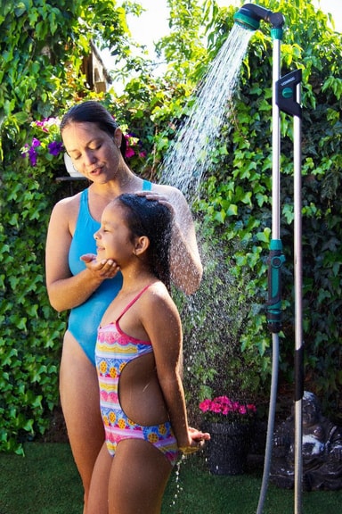 Med denne VONROC udendørs bruser er det ikke kun muligt at tage et brusebad udenfor, men takket være den aftagelige spray lanse, kan denne multifunktionelle havebruser også bruges til, for eksempel, vandingsanlæg. Bruseren er let at placere overalt i haven eller på terrassen takket være stativet. Med jordpinden er det også muligt at placere haven bruser fast i sandet eller græsplænen. Er havebruseren det ønskede sted? Derefter er det nemt at tilslutte havenslangen til bruseren og nyde dit brusebad eller komme i gang med din vandings arbejde!