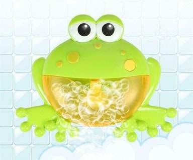 Nem at brugeFyld frøens mund med lidt brusegel eller badecreme og fyld derefter med vand. Tryk derefter på knappen, så begynder frøen at producere bobler!
