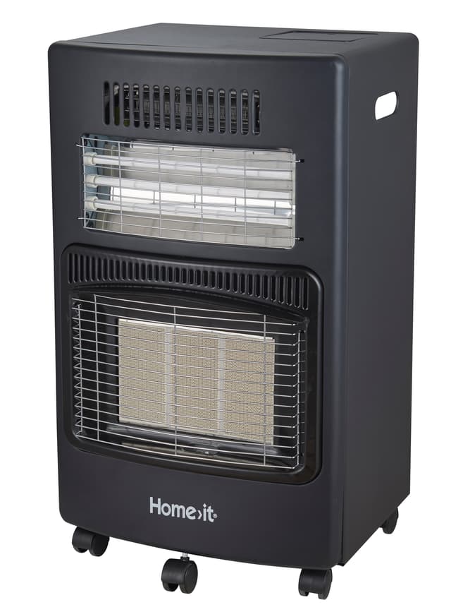 Inkl. slange og regulator. Med hjul til nem transport Varmeareal: 20 - 80 m2 3 x infrarøde varmelegemer og blæser Elektronisk tænding Væltesikring Gasforbrug - 3 varmetrin: Lav: 1500 watt 110 g/t Mellem: 2800 watt 200 g/t Høj: 4200 watt 305 g/t Flaskegas: G30 propan/butan Gastryk: 30 mbar Blæser: 220-240 V /15W Infrarød: 400/800/1200 W Plads til gasflaske op til 11 kg. Sortlakeret med kromrist Mål: 42 x 36 x 73 cm CE/TÜV-godkendt