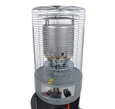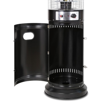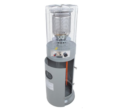 Gasvarmer LYTHOUSE H135cm. Den dekorative gasvarmer giver varme og lys, skaber en hyggelig atmosfære og giver dig mulighed for at nyde udendørslivet i længere tid selv på kølige dage. Gasvarmeren er velegnet til brug på hjemmeterrasse, restaurant eller cafe. Terrassevarmeren er nem at bruge på grund af den elektriske (batteri) tænding og bekvem flammekontrol. Med hjulsamlingen kan terrassevarmeren nemt flyttes om nødvendigt. Hældningssensoren slukker for flammen, når gasvarmeren vippes mere end 45°. Det automatiske afspærringsanlæg stopper gastilførslen øjeblikkeligt, hvis der opdages en flammedæmpning eller gaslækage. Gasvarmerens krop er lavet af stål og afsluttet med mørkegrå pulverlakering. Maksimal varmeydelse 13kW. Opvarmet areal 10-16m². Gasforbrug: 945g/t. Egnet gas: propan, butan eller LPG. Gasregulator medfølger ikke, den fås separat, varekode TA329142.