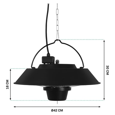 VONROC Terrassevarmer Ustica  – 1500W Infrarød Hængende Heater med IP44 | Inkl. Tilbehør