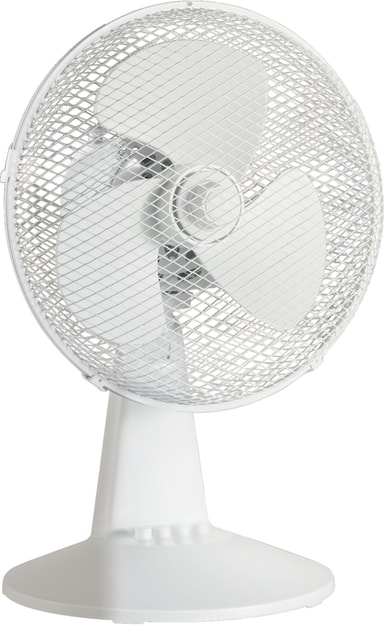 Den kompakte og bærbare bordventilator har en 12-tommer ramme og 3-bladet design. Du kan også justere vinklen på ventilatoren for at sikre ordentlig luftcirkulation.