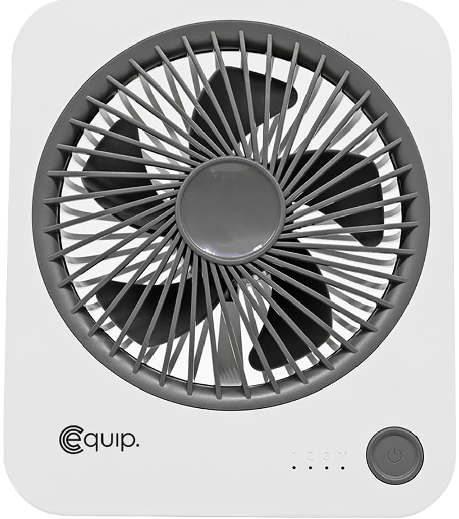 Denne Equip genopladelige bord-/vægventilator holder dig kølig ved skrivebordet. Den transportable ventilator har et 1200 mAh batteri, 3 hastigheder og justerbar højde for tilpasset luftstrøm.Læs mere om produktet