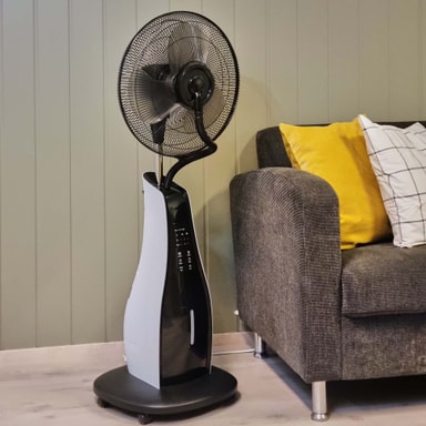 En smart 2-i-1 løsning som kjøler enda behageligere enn en vanlig kjølevifte. I tillegg til viftefunksjonen vil viften blåse ut vanndamp som gjør følelsen optimal.