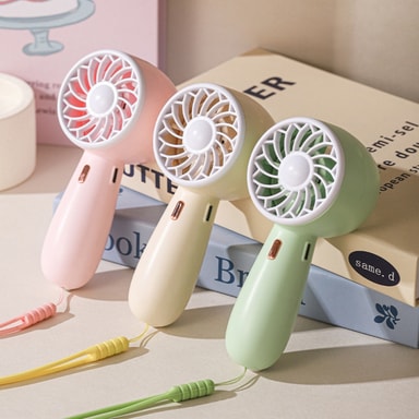 Kraftfuld køling: Denne mini håndholdt ventilator leverer pålidelig køling med tre justerbare hastighedsniveauer, designet til kontor, rejse, studie og shopping. Som en bærbar USB genopladelig ventilator med 350mAh batteri giver den omkring 3h driftstid efter cirka 2h opladning og er ideel som kompakt bordventilator eller rejsemini, hvilket sikrer øjeblikkelig personlig køling uden at fylde meget.