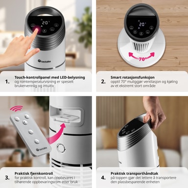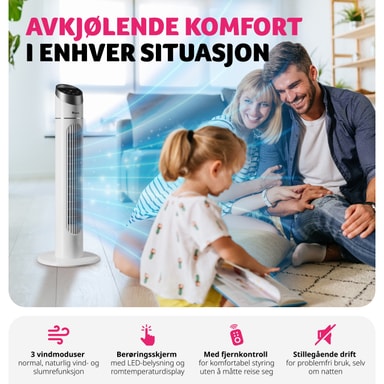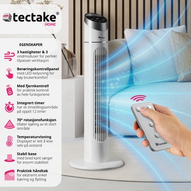 Sig nej til en svedig sommer med den kraftfulde tårnventilator fra tectake. Ventilatoren har tre forskellige ventilationsprogrammer, tre hastighedsniveauer samt en timer og drejefunktioner, som kan indstilles ved hjælp af touch-kontrolpanelet. Takket være ventilatorens lave vægt, slanke design og praktiske håndtag kan det robuste fritstående produkt opsættes hurtigt og nemt, hvor det måtte være nødvendigt. Ved hjælp af fjernbetjeningen kan den drejelige tårnventilator også styres fra dit skrivebord eller seng - så du kan komme igennem de varme dage med minimal indsats. Få denne smarte ventilator fra tectake, og sørg for, at dit hjem er køligt og friskt om sommeren.