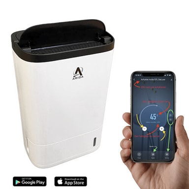 Denne affugter kan tilsluttes Wifi og styres med en app på telefonen.